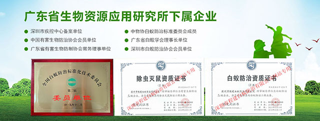 專注于徹底根治、防治結合,售后跟蹤服務,專業(yè)服務工程師有豐富實戰(zhàn)經(jīng)驗超過十年。持有專業(yè)資格證書認證:“有害生物防制服務機構服務能力證書B級”、“白蟻防治服務機構服務能力證書B級”所有員工持有“深圳市白蟻防治上崗證”和“深圳市除蟲滅鼠上崗證”,雙資格證上崗服務。榮獲過:“優(yōu)質服務示范單位”、“白蟻防治服務信譽AAA級單位”、“深圳市白蟻防治先進單位”、“深圳市十大白蟻防治品牌”、“深圳市殺蟲公司”、“深圳市消殺公司”先進單位等榮譽。